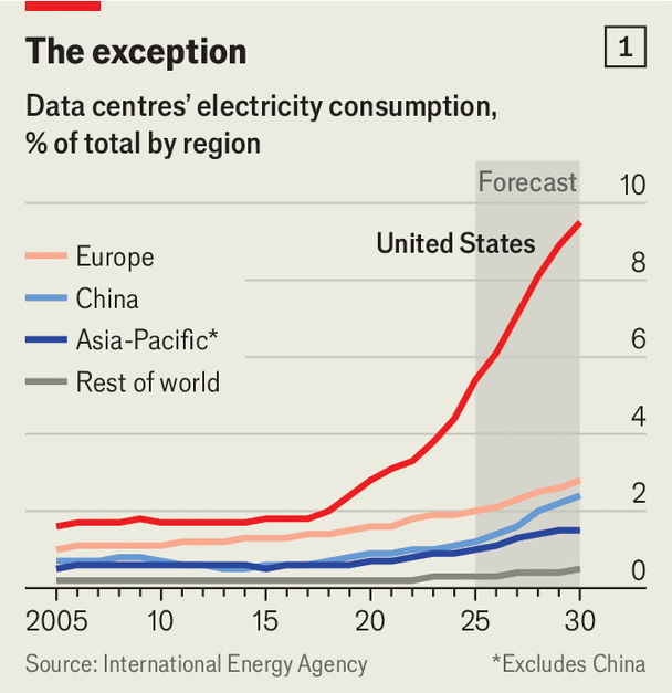 And here’s another concerning parallel. 15 years ago, the shale gas revolution looked a bit like the data centre one: a new technology suddenly, and quickly, sprouted up in physical form. In America, that led to energy independence and—in a roundabout way—granted a freer hand to sanction Russia after its invasion of Ukraine, or (for better or worse) attack Iran this week. Britain and most of Europe, meanwhile, have been bogged down by their failure to adapt and stuck paying through the nose to import gas. (France, with its nuclear fleet, is a notable exception.)